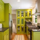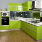 يمكن لأي ظلال خضراء في هذه الحالة إحياء الغرفة وإعطائها سحرًا خاصًا وأنيقًا. الفستق والليمون والأخضر الداكن – يمكن أن تستمر لعبة الظلال إلى الأبد. يمكن أن ينعكس وجود الألوان على حواف أرفف الأطباق ، وأدراج أدوات المائدة ، ومفارش المائدة ، والمناديل. يمكنك استخدام الأطباق بألوان خضراء زاهية أو برسومات ذات ظلال خضراء فاتحة – بشكل عام ، سيتم الاحتفاظ بمثل هذا المطبخ في نظام ألوان واحد ، وهذا خبر سار..