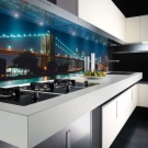 يعتبر الزجاج من أكثر المواد الخاملة. لا يمتص الروائح ، مقاوم للمواد الكيميائية ، لا يتفاعل مع الرطوبة. هذه الخصائص مناسبة جدًا للاستخدام في المطبخ. لذلك ، تكتسب الألواح الزجاجية للمطبخ مؤخرًا شعبية متزايدة..