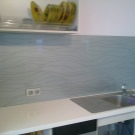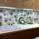 في الختام ، بضع كلمات حول العناية بالألواح الزجاجية. إنه غير معقد. يكفي استخدام المنتجات المنزلية الشائعة لإزالة الأوساخ والشحوم. من غير المرغوب فيه استخدام مواد كاشطة وفرش معدنية. لا تنس أن هذا لا يزال زجاجًا وقم بحمايته من الصدمات. تأكد من إغلاق الفجوة بين اللوحة والجدار لمنع دخول الرطوبة هناك لتجنب تكون العفن والعفن خلف اللوحة..
