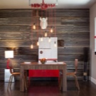 لا ينصح الخبراء باستخدام الأرضيات الخشبية لتزيين جدران المطبخ في منطقة المريلة ، لأن هذه هي المنطقة الأكثر خطورة لمثل هذا الطلاء. هذه المواد مناسبة بشكل أفضل لتزيين الجدران في منطقة تناول الطعام بالمطبخ. يتميز المطبخ ، الذي تم تشطيبه بالصفائح ، بأصالته ، ويمكن أن يصبح هذا التشطيب من أهم معالم مطبخك الداخلي. العيب الوحيد للأرضيات الخشبية هو أنها مادة باهظة الثمن نسبيًا ، لذلك من أجل توفير المال ، يمكنك تزيين المطبخ جزئيًا بها..