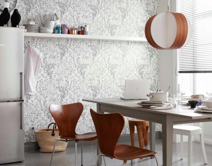 لا يحتوي ورق الحائط من الفينيل على نفاذية الهواء على الإطلاق ، لذلك يمكن أن يؤثر على تكوين رائحة كريهة في المطبخ. تعتبر الخلفيات الأكثر شيوعًا غير عملية للغاية ، لذا لا ينبغي شراؤها لتزيين جدران المطبخ ، وخاصة لتكسية منطقة العمل. سوف يتم فرك هذه الخلفية بسرعة كبيرة وتتسخ..