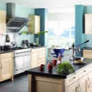 يمكن فقط طلاء الجدران الجافة تمامًا من الرطوبة بطلاء مضاد للبكتيريا. من الأفضل أيضًا تنظيف سطح جدران مطبخك مسبقًا. يسهل تطبيق هذا الطلاء على الجدران ويجف بسرعة. العيب الوحيد هو أن الشركات المصنعة تنتج هذا الطلاء حصريًا بألوان فاتحة أحادية اللون ، لذلك لا يمكنك فصل جدران المطبخ بشكل مشرق باستخدام هذا الطلاء ، سيكون تصميم المطبخ في هذه الحالة هو الأكثر شيوعًا. لكن المطبخ ذو الجدران الفاتحة سيبدو أوسع وأكثر اتساعًا..