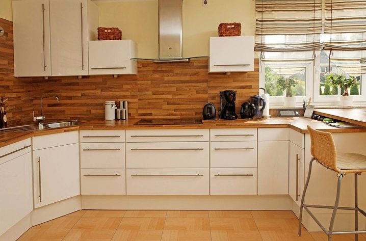 في الآونة الأخيرة ، في تصميم المطبخ ، تم استخدام العديد من التشطيبات ، خاصة لجدار العمل ، حيث يتم استخدام الألواح الخاصة للزخرفة.