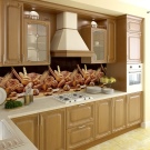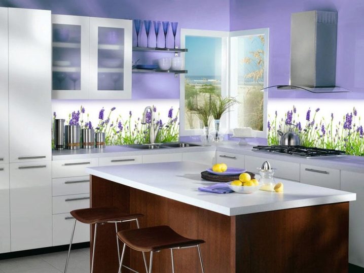 بالإضافة إلى ذلك ، عند إجراء أعمال التركيب ، يمكن تثبيت المريلة على صندوق خاص ، مما يسهل توصيل الأسلاك الكهربائية أو نظام التهوية أسفل الألواح. مواد التشطيب ميسورة التكلفة وآمنة للصحة وصديقة للبيئة. تحتوي معظم لوحات الحائط MDF على صورة مطبوعة. لذلك ، باستخدام هذا النوع من الزخرفة ، يصبح المطبخ جميلًا وأنيقًا. المواضيع التجريدية والشاي والقهوة والفاكهة تحظى بشعبية كبيرة..