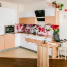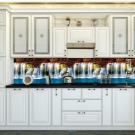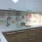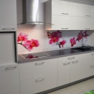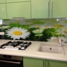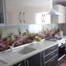 يتم تثبيت الألواح الزجاجية باستخدام رؤوس تثبيت خاصة. نظرًا لحقيقة أن أعمال التركيب تتم بطريقة سلسة ، فإن صيانة ساحة المطبخ بسيطة. تتميز طباعة الصور على الزجاج بطبقة واقية ، لذلك يحتفظ المنتج بمظهره الجميل لفترة طويلة.
