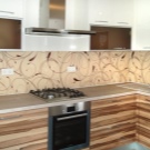 يفضل معظم المصممين عند تزيين المطبخ استخدام مآزر المطبخ الزجاجية ، كما يطلق عليهم "بشرة". الألواح الزجاجية مصنوعة من نوعين من الزجاج – عادي ومقسى. تحتوي الألواح الزجاجية العادية على طبقتين – هذا هو الزجاج نفسه وورقة رقائق خشبية أو فيلم ملون ملصوق عليه. هذه الألواح هشة إلى حد ما في الاستخدام..