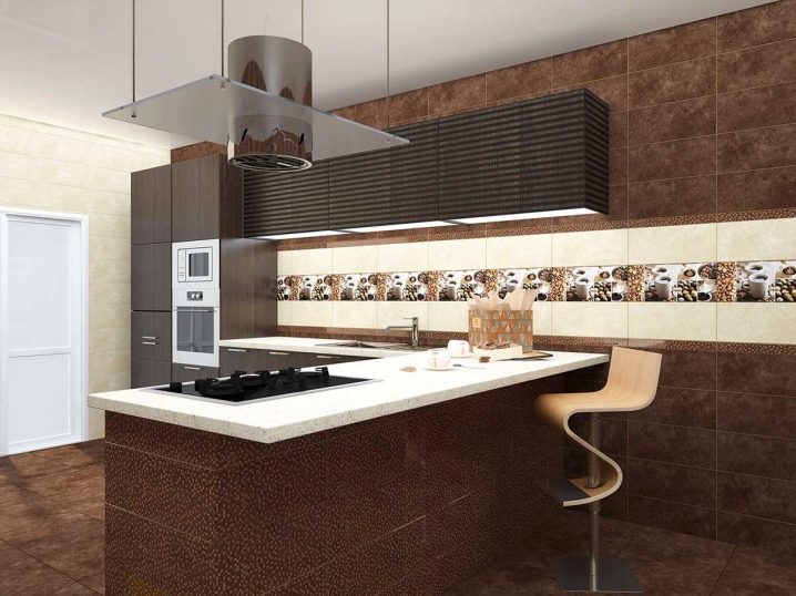 يبدو البلاط البني لذيذًا جدًا في المطبخ. تتنوع ظلالها لدرجة أن هناك خيارًا حتى بالنسبة للذوق الأكثر تطلبًا.. سوف يخلق البيج والقهوة والبني الداكن والموكا والظلال اللبنية والينجي انسجامًا في المطبخ وسيناسب أي أثاث تقريبًا. لا داعي للقلق بشأن اختيار الألوان المناسبة ، يكفي الجمع بين عدة درجات من اللون البني الفاتح والداكن ، وستخلق تباينًا ناعمًا.