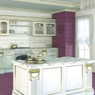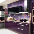 البلاط الأرجواني مثالي لمطبخ على طراز بروفانس. إنه ينطلق من رقي الإضاءة الداخلية. يمكن أن يصور تقليدًا لنمط الدانتيل أو زخرفة نباتية. ستبدو مسرحية ظلال اللون الأرجواني والأرجواني والخزامى والأرجواني جيدة على المريلة. أيضًا ، في هذا النمط ، يتم الجمع بين البلاط الأزرق والأبيض والأرجواني جيدًا..