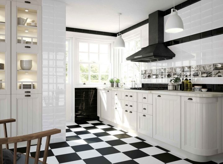 لا ينصح بتزيين المطبخ بالكامل باللون الأسود.. في هذه الحالة ، قد تبدو الغرفة أصغر حجمًا ، وحتى مع وجود إضاءة كافية ، ستكون مظلمة جدًا. الخيار الأفضل هو إضافة ظلال فاتحة واحدة أو أكثر للبلاط. اعتمادًا على نظام الألوان العام في الداخل ، يمكن أن يكون بيج أو أخضر أو أرجواني أو رمادي..