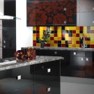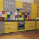هناك خيارات جاهزة للسيراميك متعدد الألوان. يمكن إنشاء تقليد لنمط مصنوع من أجزاء متعددة الألوان بأشكال مختلفة. أو فسيفساء حديثة لا تحتاج إلى قطع صغيرة ، فقد تم تطبيقها بالفعل وتشكل صفيحة كبيرة. في وسط المئزر الخزفي متعدد الألوان ، يمكنك وضع رسم تجريدي أو إنشاء صورة كاملة..