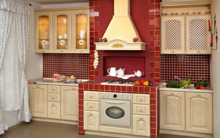 تعتبر بلاط المارون جنبًا إلى جنب مع البلاط الملون بالزيتون وأطقم المطبخ البيج خيارًا جيدًا لمطبخ على الطراز الريفي. بالنسبة للديكور الداخلي الكلاسيكي ، يكون السيراميك العادي أكثر ملاءمة ، على سبيل المثال ، رمادي فاتح ، بورجوندي ، بني.