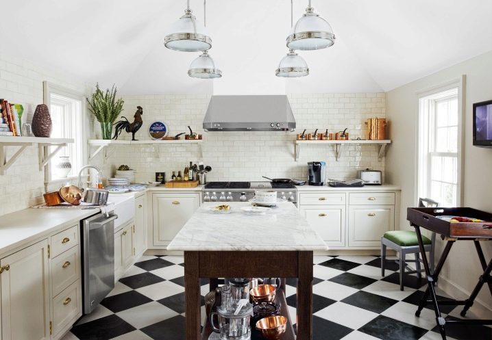 يعتبر الجمع بين نوعين من البلاط بألوان متباينة ، موضين بنمط رقعة الشطرنج أو بنمط رسومي ، مثاليًا للمطبخ الحديث..