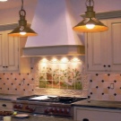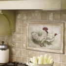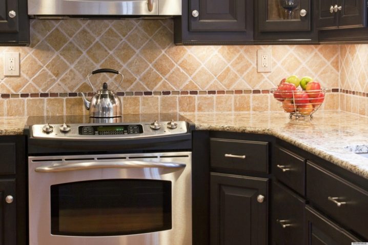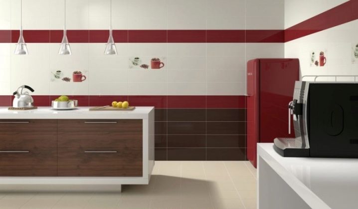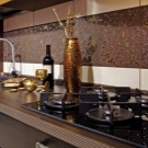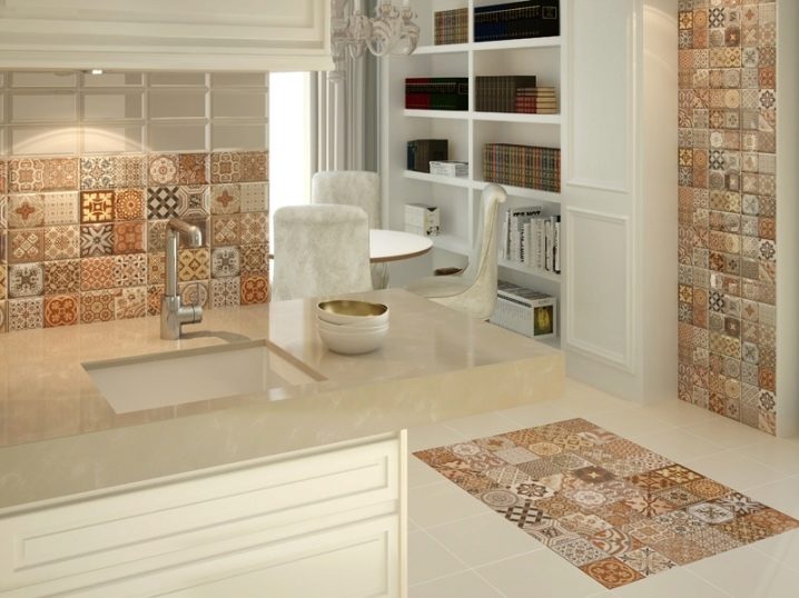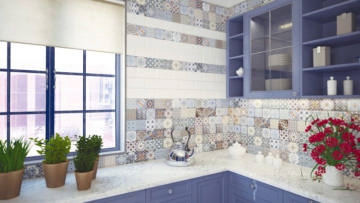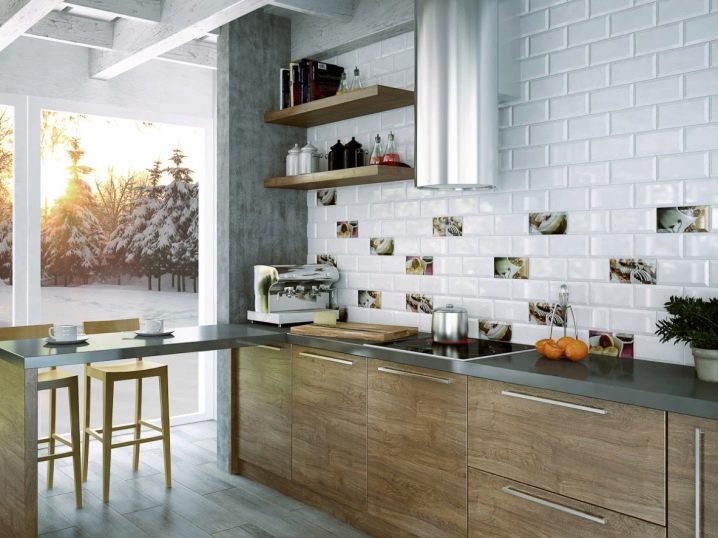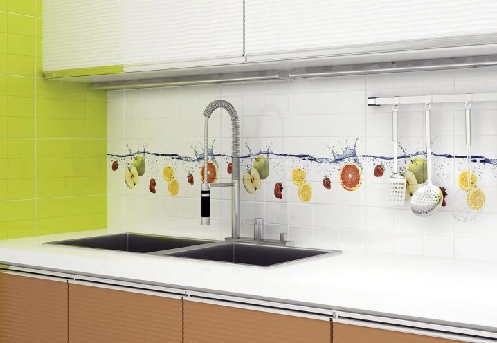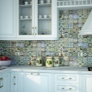 يتم وضع البلاط بالكامل أو تقسيمه إلى شرائح ، يتم منها وضع التراكيب الأصلية في المستقبل. يمكن أن تكون الأنماط مختلفة جدًا ، من الصور المعتادة للفواكه إلى المناظر الطبيعية المعقدة. عند الاقتضاء ، يتم استخدام السيراميك لتزيين الألواح والحدود التي تبدو أنيقة للغاية. مع الإضاءة المناسبة ، تبدو حلول التصميم الفريدة هذه جميلة بشكل خاص..