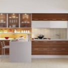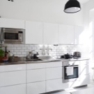 في المطابخ ذات التصميم المتحفظ ، يوصى باستخدام البلاط العادي أو الزجاج بدلاً من البلاط. في حالة وجود صعوبات في عملية التصميم ، يُسمح باستخدام البلاط الأبيض ، نظرًا لأن هذا اللون عالمي ويتناسب بشكل متناغم مع أي بيئة تقريبًا. يبدو البلاط الموجود على المريلة أصليًا ، ويتناسب مع التباين مع مجموعة المطبخ. في الوقت نفسه ، ليست هناك حاجة لزيادة تحميل هذه المنطقة بإدخالات زخرفية بحيث تتمتع بمظهر أنيق وعصري..