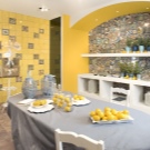 مجموعة كبيرة ومتنوعة من البلاط تجعل من الممكن تجسيد أكثر الأفكار غير العادية وإنشاء تصميم داخلي فريد في المطبخ. يعتمد اختيار مادة التشطيب هذه بشكل أساسي على التصميم الأسلوبي العام ويتكون من أنواع مختلفة من الفروق الدقيقة..