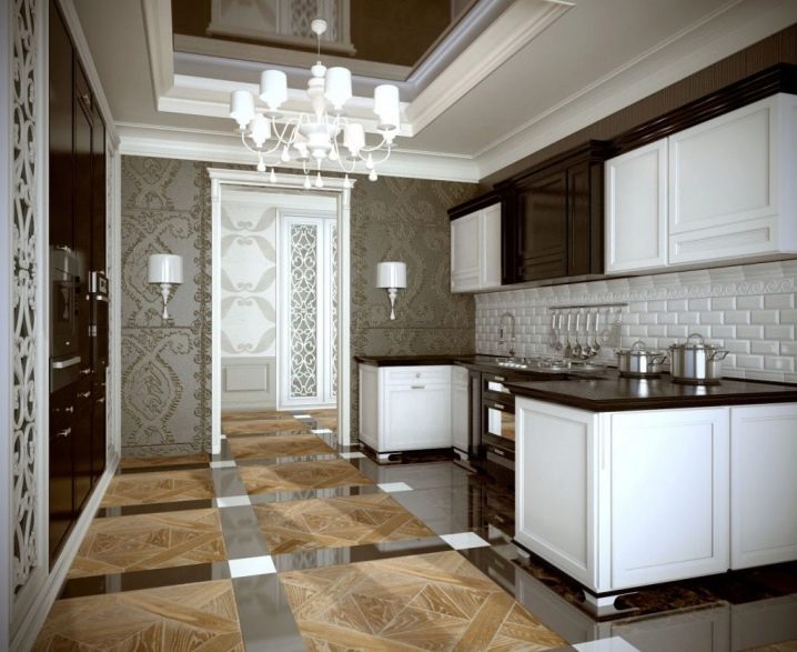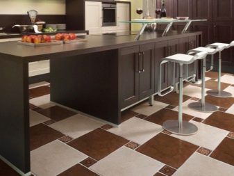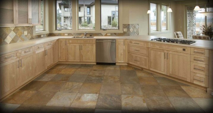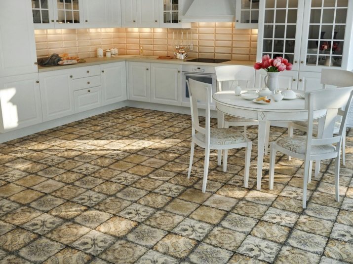 الأكثر عملية ومناسبة للمطبخ هي ظلال رمادية وبيج وبنية. إنها مقاومة للأوساخ ، وفي نفس الوقت تعمل على توسيع المنطقة بشكل كبير ، وهو عامل مفيد للمطابخ الصغيرة. حجم البلاط مهم أيضًا من نواح كثيرة ، لأن المربعات الكبيرة تملأ المطبخ بالمساحة ، والمنتجات المستطيلة تطيله. تبدو بلاط الأرضيات المبطنة بأحجار الماس أو أي نمط بسيط آخر جميلًا. يمكن أن يكون عاديًا أو مزينًا بأنماط زخرفية..