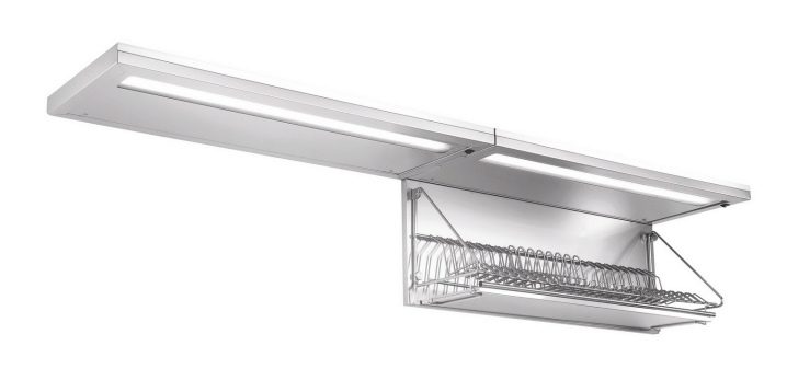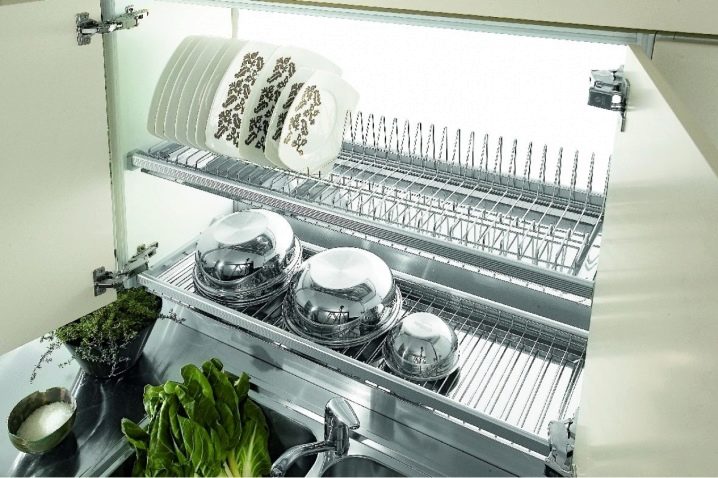 - مثبت. يتميز التجفيف الثابت أيضًا بمزاياه ، فهي تكمن في حقيقة أنه عند شراء وحدة المطبخ ، من المحتمل أن يتم توفير التجفيف على الفور ، مما يؤدي إلى تجنب النفقات غير الضرورية. أيضًا ، ستكون الأطباق في مثل هذا التجفيف سليمة بفضل أدوات التثبيت الموثوقة.