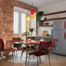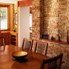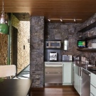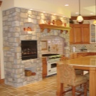 - إذا كانت مساحة المطبخ صغيرة ، فلا ينبغي أن يكون هناك الكثير من الأحجار في الزخرفة. هذا يقلل بصريًا الغرفة ، ويجعلها قاتمة وتبدو مثل الطابق السفلي. حتى في الغرف الكبيرة ، من الأفضل استخدام شظايا من البلاط الحجري – للتركيز على التفاصيل أو على جدار واحد.