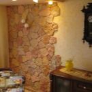 - لا ينبغي لصق هذه البلاط على أقسام دريوال – فهذا دعم هش للغاية لمثل هذه النهاية. لمثل هذا الجدار ، فإن بلاط الجبس المزخرف الذي يقلد الحجر مناسب تمامًا. حسب التصميم ، فهي ليست أدنى من تلك الحقيقية بأي حال من الأحوال ، وتزن أقل بكثير.