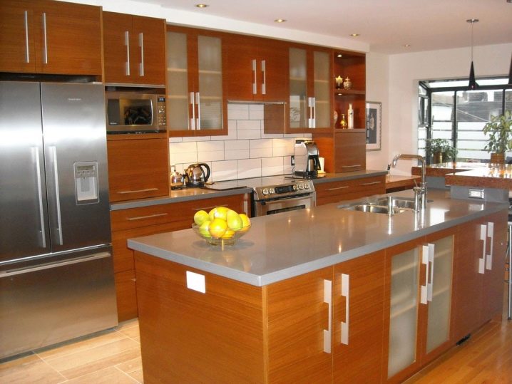 توجد أغطية ذات أسطح مدمجة – زجاج وفولاذ. سوف تتناسب بشكل متناغم مع المطبخ ذي الطراز الإنجليزي والكلاسيكي والرجعي. سيكون الحوض الزجاجي مناسبًا هنا..