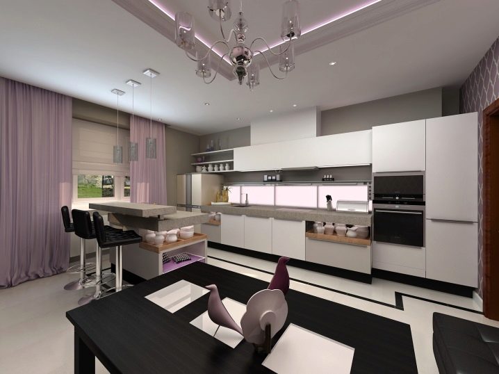 شفاط المطبخ المخفي تحت سقف ممتد هو أيضًا حل مثير للاهتمام وعملي للغاية. بعد كل شيء ، هناك الكثير من المساحة الحرة ، مما يعني أن هذا مجرد حل مثالي ، وليس فقط لغطاء المطبخ ، ولكن أيضًا للأسلاك الكهربائية (ناهيك عن القدرة على إخفاء كل التفاوت في السقف). مع الحل الصحيح لمسألة التهوية لن تكون هناك مشاكل في ترهل السقف وكذلك مع رفعه وتركيب الأجزاء المخفية خلفه.