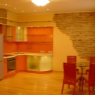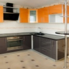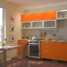 لعشاق بيئة هادئة ، خلفية البيج. سوف يهدئ اللون البرتقالي اللامع. سيصبح المطبخ مشرقًا ، لكنه ليس متحديًا..