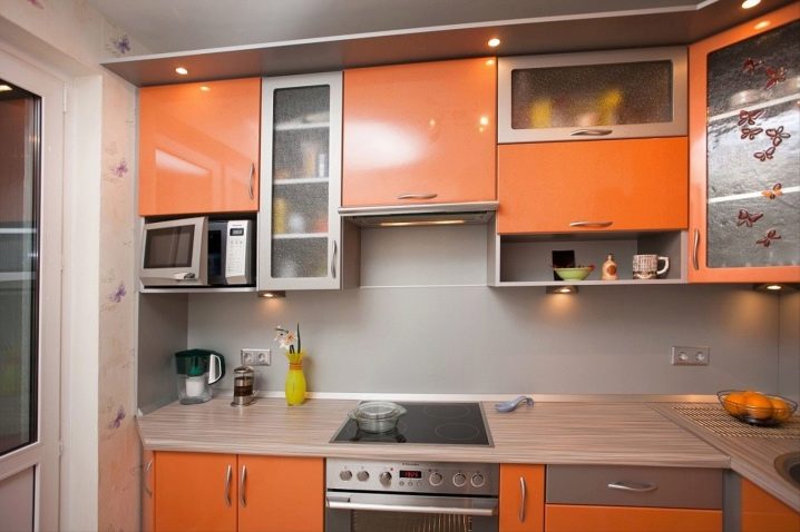 للحصول على سماعة رأس برتقالية وبرتقالية ، من الأفضل لصق الجدران باللون الرمادي الفاتح أو الأصفر أو اللبني. في مثل هذه الحالة ، تكون خلفيات كل من الضوء والظلال الداكنة مناسبة. الشيء الرئيسي هو أنها ليست براقة ولا تسد اللون الزاهي لمجموعة المطبخ. يمكن استخدام اللون البرتقالي لتزيين الجدران ، ولكن بكميات صغيرة كعناصر وتفاصيل إضافية.