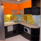 ورق الحائط الملون هو خيار آخر ليس الخيار الأفضل لمطبخ برتقالي. ستلفت الثمار المشرقة الموجودة على ورق الحائط كل الاهتمام وستجعل الجزء الداخلي ثقيلًا فقط. إلى جانب اللون البرتقالي النشط ، تحصل على صورة حزينة ، على الرغم من شغب الألوان..