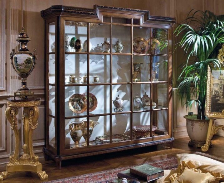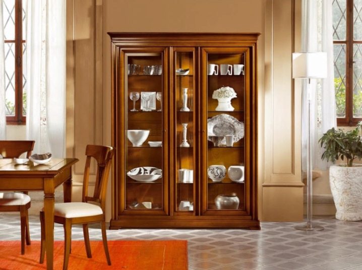 - يجب أن تكون الخزانة في الداخل الكلاسيكي مصنوعة من الخشب الطبيعي. يمكن استخدام الزجاج الشفاف أو النحت الماهر كديكور..