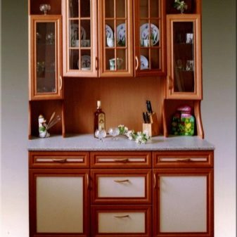 أي خزانة تلفت الانتباه إلى نفسها ، وهذا هو سبب أهمية اختيار الطراز المناسب. عادة ، يتم شراء هذه الخزانات بشكل منفصل ، لأن مجموعات المطبخ لا توفر مثل هذا التصميم. زوجان من الأرفف وعدد قليل من الأدراج لا تحسب. المضيفة الحقيقية هي دائمًا عدد قليل منهم ، وهناك الكثير من الأطباق..