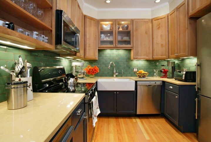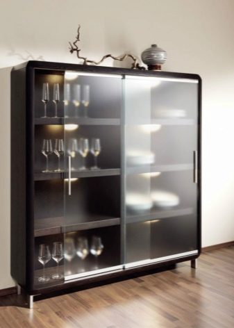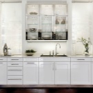 - مادة المنتج بأكمله. إذا كان لديك مطبخ ضيق ، أو أطفال صغار ، أو غالبًا ما يكون لديك العديد من الضيوف ، فإن واجهات العرض الزجاجية ليست خيارك..