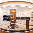 يمكن أن تكون واجهات العرض إما صغيرة: يتم تثبيتها في الأعلى أو على الأرض ، أو بالحجم الكامل: فهي تمتد من الأرض إلى السقف. النماذج الأنيقة هي زخرفة ممتازة لغرفة تناول الطعام في المطبخ. يصنع العديد من المصممين واجهات عرض زجاجية تمامًا ، وهي ليست ملائمة جدًا للاستخدام المنزلي ، ولكنها تتمتع بمظهر أصلي للغاية.