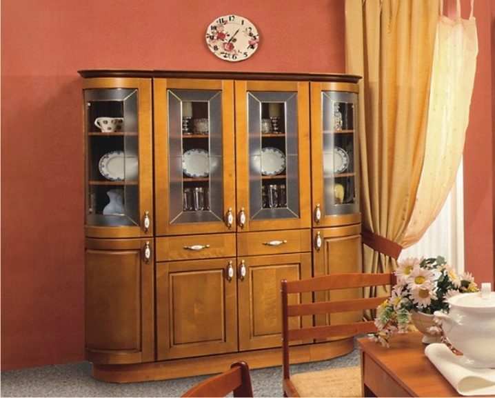 تتمتع الخزانة الجانبية بمظهر جذاب وأصلي إلى حد ما ، لكن أبعادها تترك الكثير مما هو مرغوب فيه. لذلك ، من الصعب وضع خزانة “الجدة” في مطبخ عادي. جزء البوفيه – غرف معيشة مطبخ وغرف طعام كبيرة الحجم.
