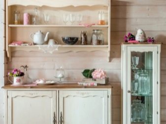 - من السهل تركيب الخزائن القديمة أو الحديثة بمختلف أنواعها في “البلد” أو “بروفانس”. يمكن أن تكون إما خشبية بالكامل أو مزينة بزجاج شفاف أو ملون.