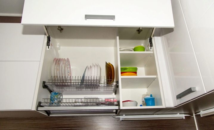 - الأبواب للطي. الاسم يتحدث عن نفسه. بمجرد فتح هذه الأبواب ، يسهل طيها ، ونظرًا لحقيقة أن مقبضها منخفض جدًا ، فإن الباب سهل الإغلاق. في أغلب الأحيان ، يتم تثبيت هذه الأبواب على خزانات حيث يتم توفير مجفف لأدوات المطبخ..