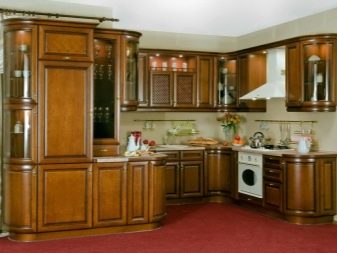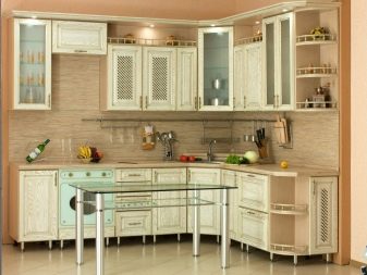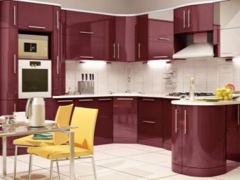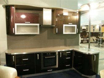 - أبواب نصف قطرية – اتجاه أنيق للأزياء الحديثة. الاتجاه الآن هو التحولات السلسة ، والخطوط المنحنية ، لذلك في مطابخ الزاوية ، غالبًا ما يتم تثبيت واجهات نصف قطرها. تكون مقعرة أو محدبة. يمكن تسمية هذه التصميمات بأمان بأمان ، والمطابخ المزينة بعناصر مماثلة جذابة للغاية. الأبواب سهلة الاستخدام ، ولكن هناك عيبًا واحدًا – التكلفة العالية.