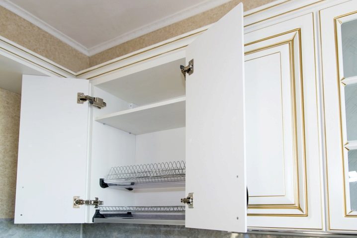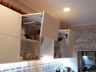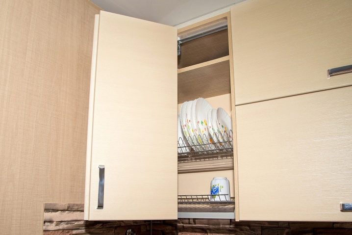 - الأبواب للطي. الاسم يتحدث عن نفسه. بمجرد فتح هذه الأبواب ، يسهل طيها ، ونظرًا لحقيقة أن مقبضها منخفض جدًا ، فإن الباب سهل الإغلاق. في أغلب الأحيان ، يتم تثبيت هذه الأبواب على خزانات حيث يتم توفير مجفف لأدوات المطبخ..