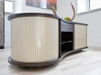 - تصميمات Tambour ليست شائعة مثل النماذج السابقة. يتم استخدامها فقط عندما تكون هناك حاجة لإغلاق مكانة أو أرفف مفتوحة لمجموعة أثاث. يتم فتحها بنفس طريقة فتح الستائر.