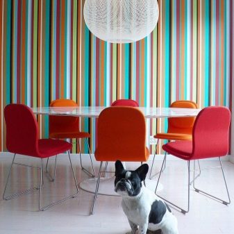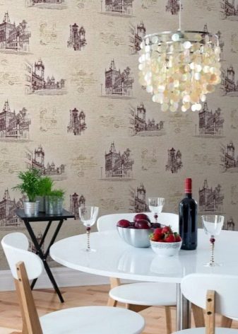 في هذه الحالة ، ليس من الضروري اختيار ورق جدران عادي للألوان المقترحة. يمكن أن يكون هذا نقشًا على ورق الحائط أو جزءًا من شريط أو ظلها فقط..