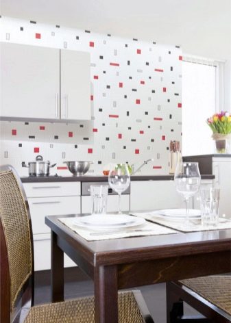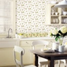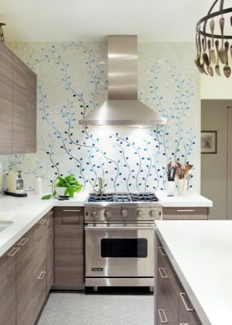 يمكن إعادة طلاء ورق الحائط غير المنسوج المحكم عدة مرات. سيسمح لك ذلك بتحديث المطبخ بسهولة في أي وقت ، باستخدام علبة من الطلاء المطلوب فقط. بالإضافة إلى ذلك ، عادة ما يكون عرض ورق الحائط غير المنسوج أكبر من ورق الفينيل والورق. هذا يبسط إلى حد كبير الإلتصاق.