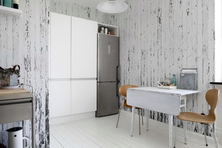 وتشمل هذه الخلفيات الفلين والخيزران والنسيج. إنهم يبدون ، وهم ليسوا رخيصين. لكن بالنسبة للمطبخ ، فإن هذا الإصدار من ورق الحائط غير عملي للغاية: فهو يمتص الروائح ، ولا تتم إزالة البقع عمليًا منها. إذا كنت ترغب في ذلك ، يمكنك عمل قسم صغير من الفلين في منطقة تناول الطعام في المطبخ وتثبيت الملاحظات أو الصور عليه.