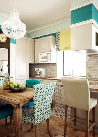 في المطابخ الصغيرة ، عند الجمع بين ورق الحائط ، فإن الشيء الرئيسي هو الاعتدال وضبط النفس. في بعض الأحيان في التصميم تريد استخدام كل شيء مرة واحدة. ومع ذلك ، فإن الجمع بين أكثر من ثلاثة ألوان أساسية أمر غير مرغوب فيه ، لأن وفرة البقع المضيئة ستجعل المطبخ الصغير أصغر. الطرق الرئيسية للجمع هي كما يلي: