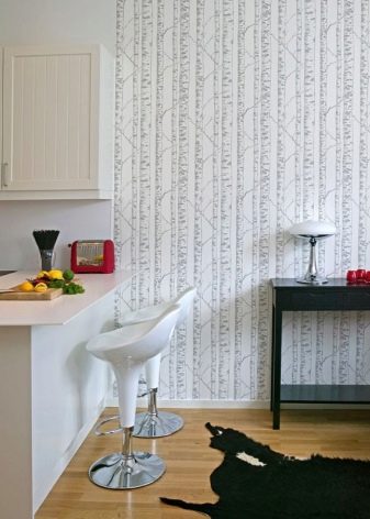 - ورق جدران يتكون من عدة طبقات من القماش غير المنسوج. في هذه الحالة ، تحتوي الطبقات السفلية على نسيج متساوي ، وتكون الطبقة العلوية فقط منقوشة. نظرًا للسطح المنقوش لورق الحائط غير المنسوج ، هناك مجموعة متنوعة من الحلول الداخلية في المطبخ. غالبًا ما تكون الطبقة العليا من ورق الحائط مصبوغة. هذه الخلفيات يمكن أن تصمد أمام العديد من عمليات إعادة الطلاء..