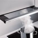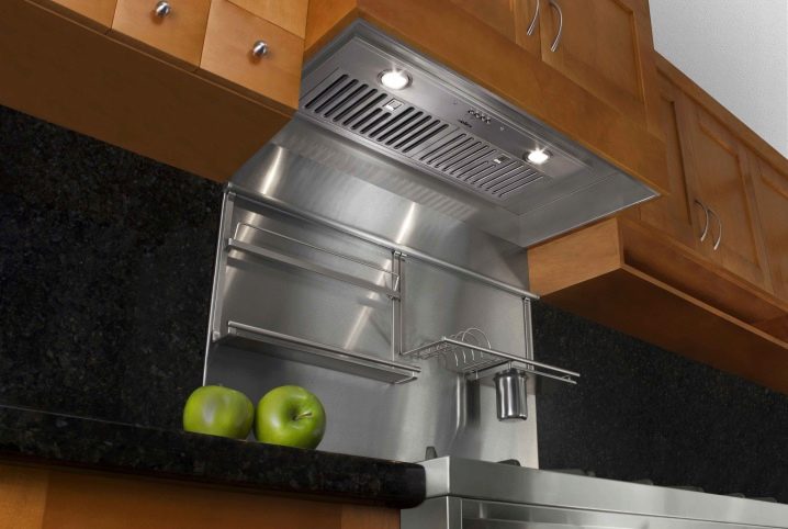 يحتوي الطراز المدمج للشفاط الدوار على نفس “الحشو” ، ولكنه يتم تثبيته في خزانة المطبخ ، مما يترك لوحة تحكم أنيقة فقط مفتوحة للعين. بالمناسبة ، ليس من الضروري شراء خزانة منفصلة للغطاء ، يمكن أن تكون “مخفية” بفضل نموذج إضافي باللون الرئيسي للمطبخ. أصبح النظام التلسكوبي ذائع الصيت بشكل خاص ، والذي يسمح بتمديد الغطاء للعمل وسحبه لإكمال شفط الهواء..