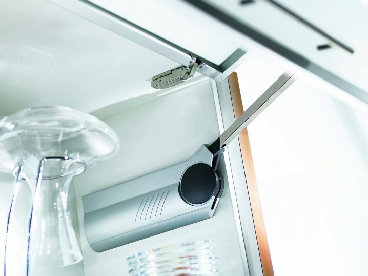 نوع آخر من المفصلات لأثاث المطبخ هو المفصلة. سعرها أعلى بكثير ، لكنه يبرر نفسه. أولاً ، إنه ملائم. دفعوا الباب وأغلق أكثر من تلقاء نفسه. ثانيًا ، يحافظ على حالة الأثاث. نظرًا لأن غلق الأبواب نفسها تنظم قوة إغلاق الباب ، وبالتالي تحافظ على كل من الواجهات والصندوق نفسه في حالتهما الأصلية. ثالثًا ، تمنع صوت إغلاق الأبواب دون تهيج الجهاز العصبي..