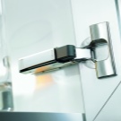 - إلى الجانب. تُستخدم هذه الطريقة عادةً بعد التثبيت مباشرةً لضبط القطر القطري للمنتج. للقيام بذلك ، استخدم المسمار في المفصلة الموجودة على المفصلة بالقرب من حافة الصندوق..