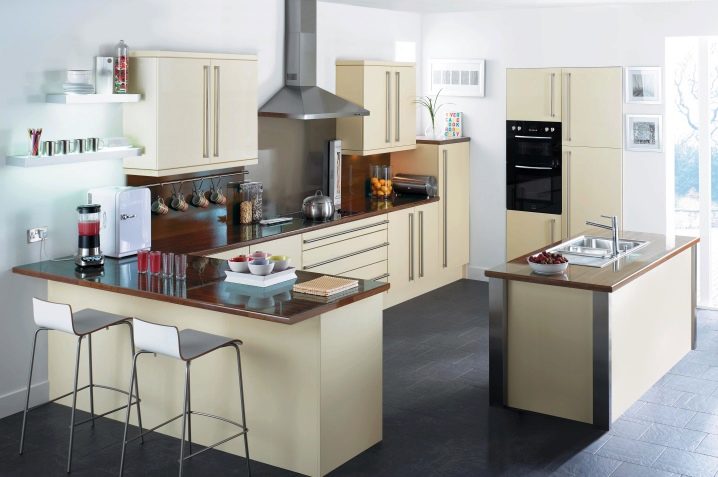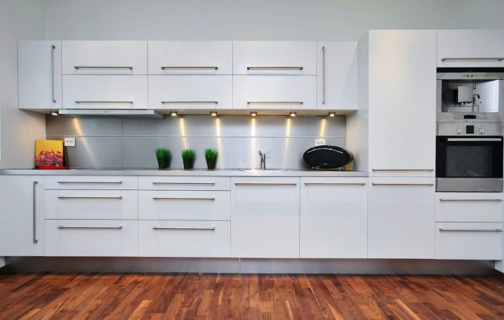 أيضًا ، يمكن تصنيع الواجهات الكاملة لخزائن المطبخ من ألواح الأكريليك. سمك هذه الواجهة رقيق جدًا – حوالي 4 مم ، لكن يتم تقديرها لقوتها. هذه صفة مهمة للغاية بالنسبة للخزانات العلوية – فهي في النهاية الأكثر تعرضًا لدرجات حرارة عالية..