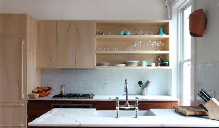 - غالبًا ما تستخدم محتويات الأرفف المفتوحة كعناصر ديكور إضافي للغرفة ، مما يجعل حتى أكثر مجموعات المطبخ القياسية فردية وفريدة من نوعها.تصميم الخزانات المغلقة يعني وجود أبواب فيها. يمكن أن تكون مفصلية وقابلة للطي. هذا الأثاث أيضا لا يخلو من المزايا..