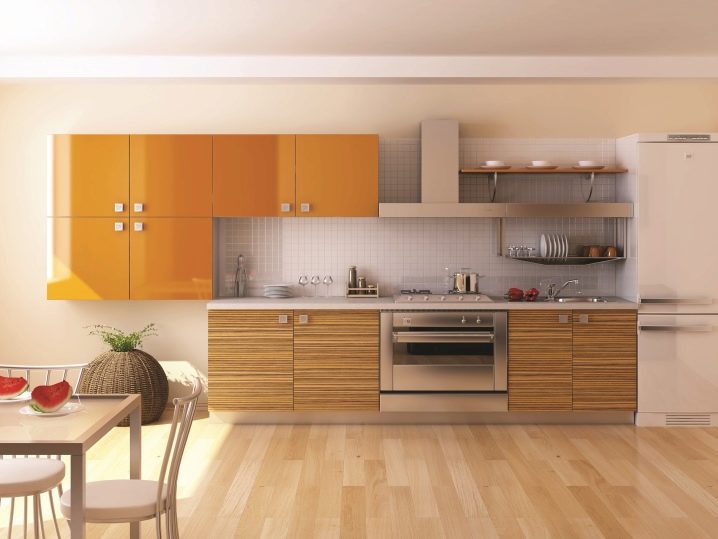 المادة التقليدية لصناعة الأثاث بشكل عام وخزائن المطبخ بشكل خاص هي الخشب ومشتقاته – MDF واللوح. في بعض الأحيان يتم تغليف واجهات وحدات الأثاث المصنوعة من هذه المواد بالبلاستيك أو القشرة. منذ وقت ليس ببعيد ، ظهر نوع جديد من البلاستيك في سوق مواد الأثاث – أكريليك.