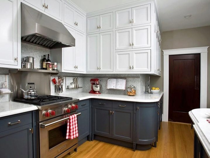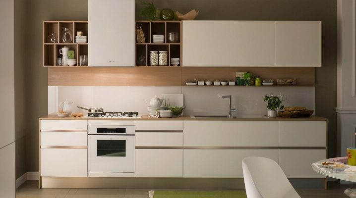 تبدو مجموعة المطبخ ذات الخزائن المغلقة أكثر اكتمالا ولاكونيا. التصميم المشترك لأثاث المطبخ يتحدث عن نفسه. تحتوي هذه الخزانات على عناصر مغلقة ومفتوحة. في أغلب الأحيان ، تم تجهيز منتصف الخزانة بأبواب ، وتوجد أرفف إضافية أسفل أو أعلى. يمكنهم تخزين التوابل ، ودفتر ملاحظات للملاحظات ، وأعواد الثقاب ، والأشياء الصغيرة الأخرى التي يجب أن تكون دائمًا في متناول اليد ، والتي تُفقد باستمرار في أكثر الأوقات غير المناسبة..